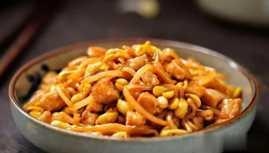 4. 加入黄豆芽:将处理好的黄豆芽加入炒好的肉丝或肉片中,继续翻炒。